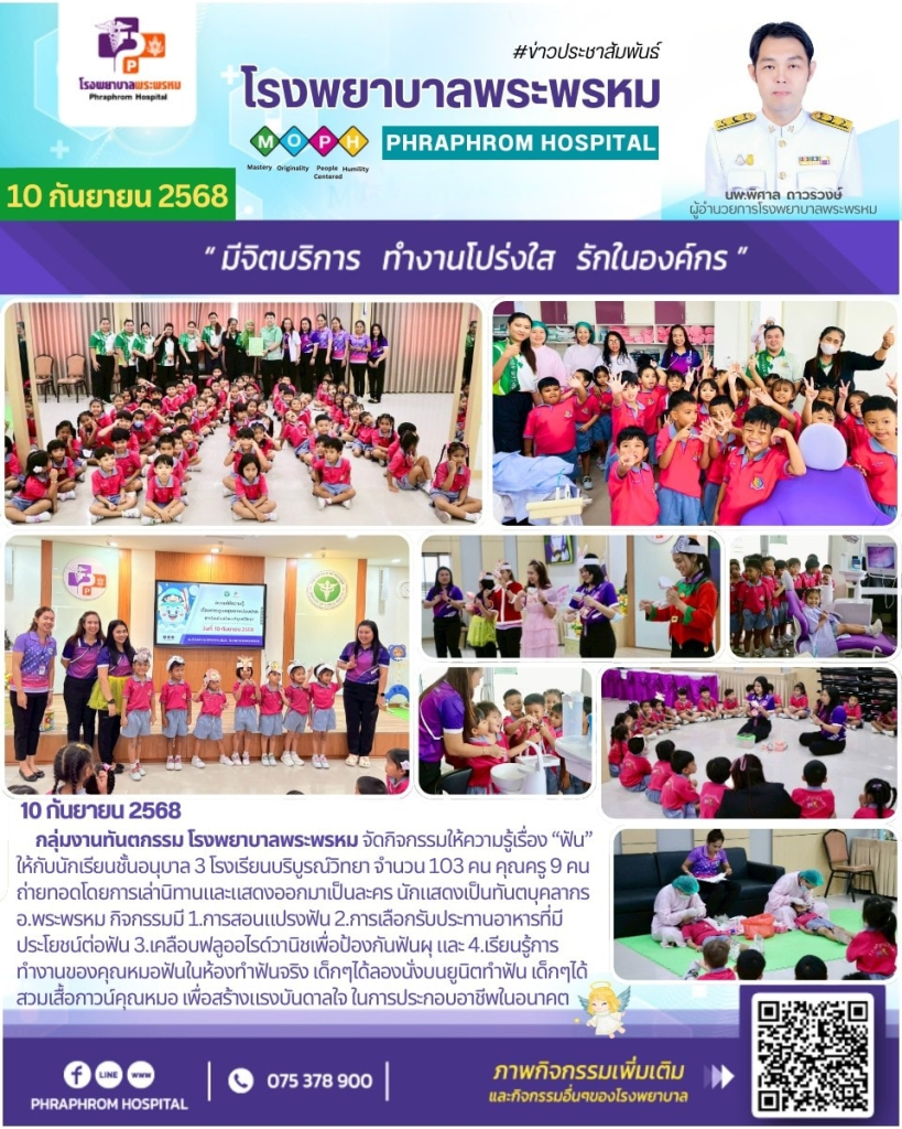 โรงพยาบาลพระพรหม จัดกิจกรรมให้ความรู้เรื่อง “ฟัน” ให้กับนักเรียนชั้นอนุบาล 3 โรงเรียนบริบูรณ์วิทยา